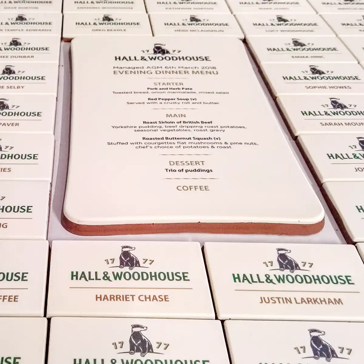 We also offer place name holders, which are a unique and delicious way to add a personal touch to the reception tables. These chocolates can be customized with the guests' names and can double as a party favour.